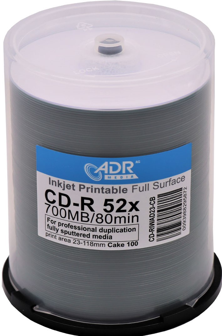 Als Europäischer Marktführer für CD Roboter und Verpackungsmaschinen für optische Medien sind wir bereits 2003 im Markt für optische Medien aktiv. Neben der eigenen ADR Media Marke vertreiben wir alle gängigen Hersteller als Distributor bereits seit vielen Jahren. Um die Kompatibilität mit unseren CD Robotern zu gewährleisten unterziehen wir alle bedruckbaren CD Rohlinge ständig neuen Tests und stehen in engem Kontakt mit den Herstellern.